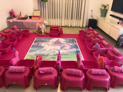 כל החלל הופך למתחם ספא וורוד עם הציוד המושלם והמקצועי מבית יום הולדת מהחלומות.